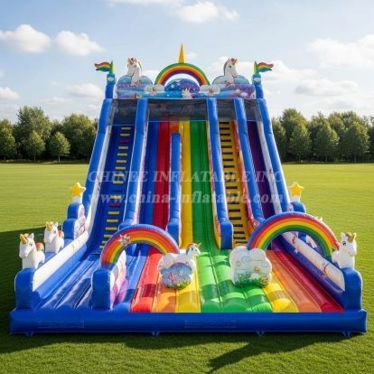 Bring magical fun to your next event with our T8-8778 Unicorn Inflatable Slide. Featuring vibrant rainbow lanes, charming unicorn characters, and whimsical cloud details, this slide captivates kids and adults alike. Built with Chinee Inflatables' superior craftsmanship, it delivers safe, thrilling entertainment for parties, school events, and community gatherings. Easy to set up and designed for lasting durability, it's the perfect centerpiece to create unforgettable memories.