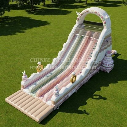 Celebrate love and joy with the T8-8820 Weddings Inflatable Dry Slide from Chinee Inflatables Inc. Designed with romantic details like wedding rings, doves, and cake-inspired decorations, this stunning slide brings elegance and fun to any wedding or special occasion. Perfect for guests of all ages, it offers a safe, exciting descent and eye-catching design, making it a highlight at your event. Crafted with premium materials for durability and beauty.