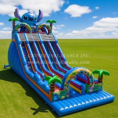 Bring endless fun to your events with the T8-8827 Lilo & Stitch Inflatable Slide! Featuring vibrant tropical palm trees and the beloved Stitch character, this giant inflatable offers multiple sliding lanes for thrilling races. Perfect for children and family events, it combines eye-catching design with durable materials to ensure safe, long-lasting entertainment. Ideal for parties, fairs, and festivals, this slide creates an unforgettable experience for all ages.
