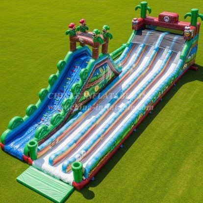 Experience thrilling fun with the T8-8850 Super Mario Inflatable Slide from Chinee Inflatables! Featuring bright, vibrant Super Mario-themed designs and multiple lanes for racing, this giant slide provides endless excitement for kids and adults alike. Perfect for events, parties, and amusement parks, its durable materials ensure safety and long-lasting performance. Bring the magic of the Mushroom Kingdom to your venue and keep guests entertained for hours!