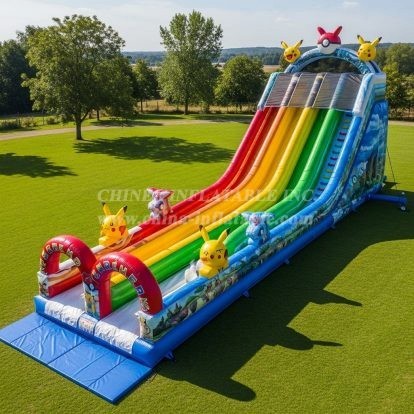 Experience endless fun with the T8-8895 Pokémon Inflatable Slide by Chinee Inflatables! This vibrant multi-lane slide features beloved Pokémon characters like Pikachu, combined with a stunning rainbow-themed design. Perfect for large outdoor events, it offers thrilling rides for kids and adults alike, ensuring excitement and memorable moments. Built with high-quality materials, it delivers safety, durability, and eye-catching appeal that will make any gathering unforgettable.
