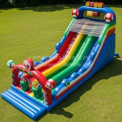 Bring the excitement of the Super Mario universe to life with this vibrant inflatable slide! Featuring colorful rainbow lanes, iconic power-up mushrooms, and playful game-themed details, this slide offers hours of fun for kids of all ages. Perfect for parties, school events, and outdoor celebrations, its durable and safe design ensures endless entertainment while capturing the charm of one of gaming’s most beloved worlds.
