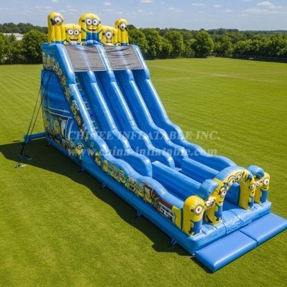 Bring the fun and excitement of the Minions to your next event with the T8-8969 Minions Inflatable Slide from Chinee Inflatables. Featuring vibrant colors and beloved characters, this giant slide is perfect for kids and families looking for thrilling entertainment. Built from durable materials for safe, long-lasting use, its multiple lanes ensure nonstop action for everyone. A fantastic addition to parties, festivals, and outdoor events, delivering smiles and unforgettable memories.