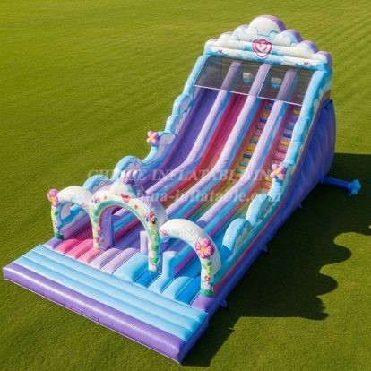 Experience endless fun with this vibrant Rainbow Theme Inflatable Water Slide. Featuring dual lanes and stunning rainbow arches, it offers a thrilling and colorful sliding adventure perfect for outdoor parties and water play. Crafted from high-quality materials, slide combines excitement, safety, and eye-catching design to delight kids and families alike.
