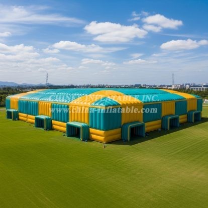 The Tent1-6568 Inflatable Structure by Chinee Inflatables Inc. is a massive, durable, and weather-resistant inflatable building perfect for large-scale events, exhibitions, or temporary facilities. Made from high-quality materials, this structure offers quick setup and portability while ensuring stability and safety. Its bold yellow and teal design makes it stand out, providing practicality with an eye-catching appearance. Ideal for outdoor gatherings, sports events, or commercial use, it delivers both functionality and impressive visual impact.