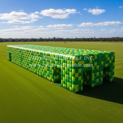 Bring your event to life with the Tent1-6591 Inflatable Cube Tent from Chinee Inflatables Inc. Designed with a bold green and yellow pixelated pattern inspired by Minecraft, this spacious inflatable structure offers a unique and fun environment for gatherings, exhibitions, or themed activities. Its durable, high-quality material ensures safety and stability, while quick setup makes it perfect for outdoor events. Stand out with this eye-catching cube tent at your next festival or party.